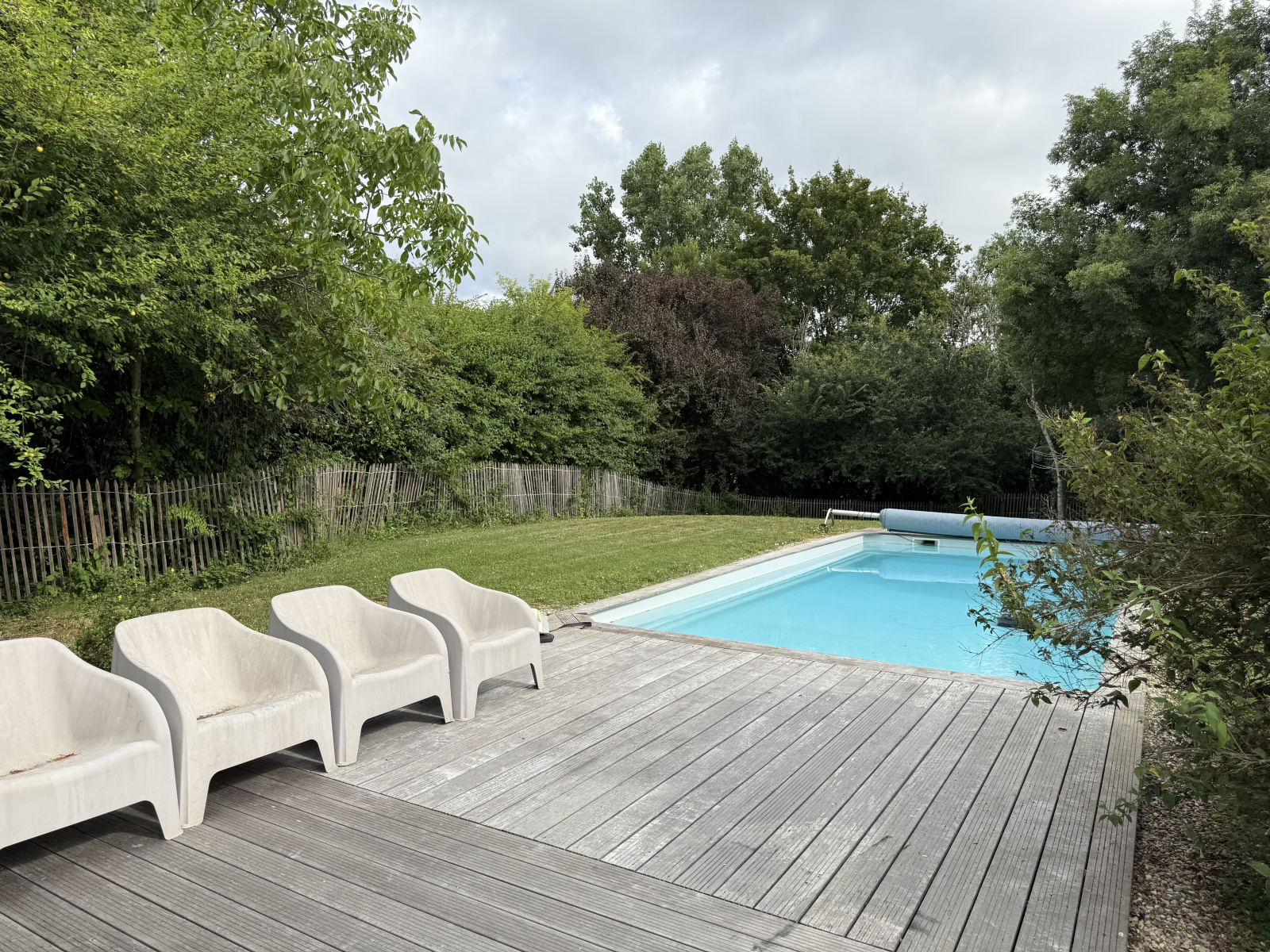 Montréal (32250)Aux abords d’un village tous commerces, maison avec trois chambres, piscine, garage et dépendances dans un joli terrain arboré de 6987m².