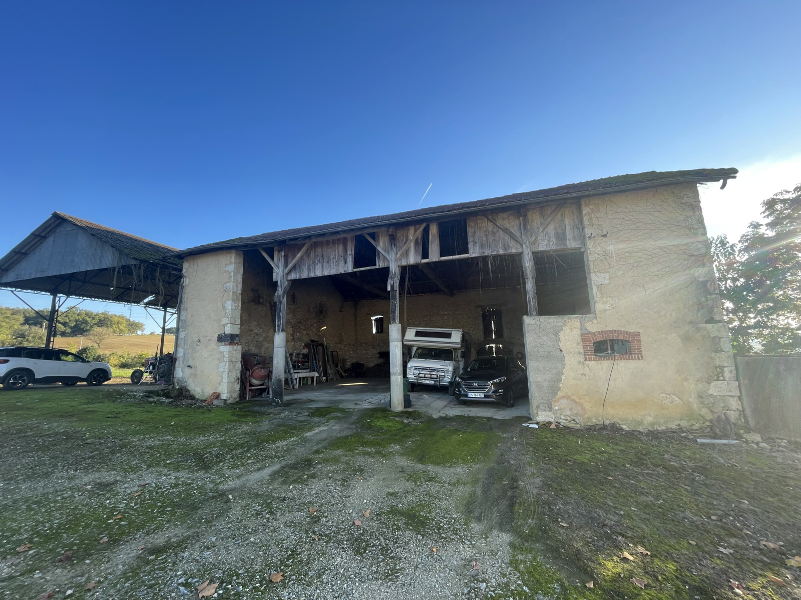 Grange ouverte de 190m² attenante à un hangar métallique