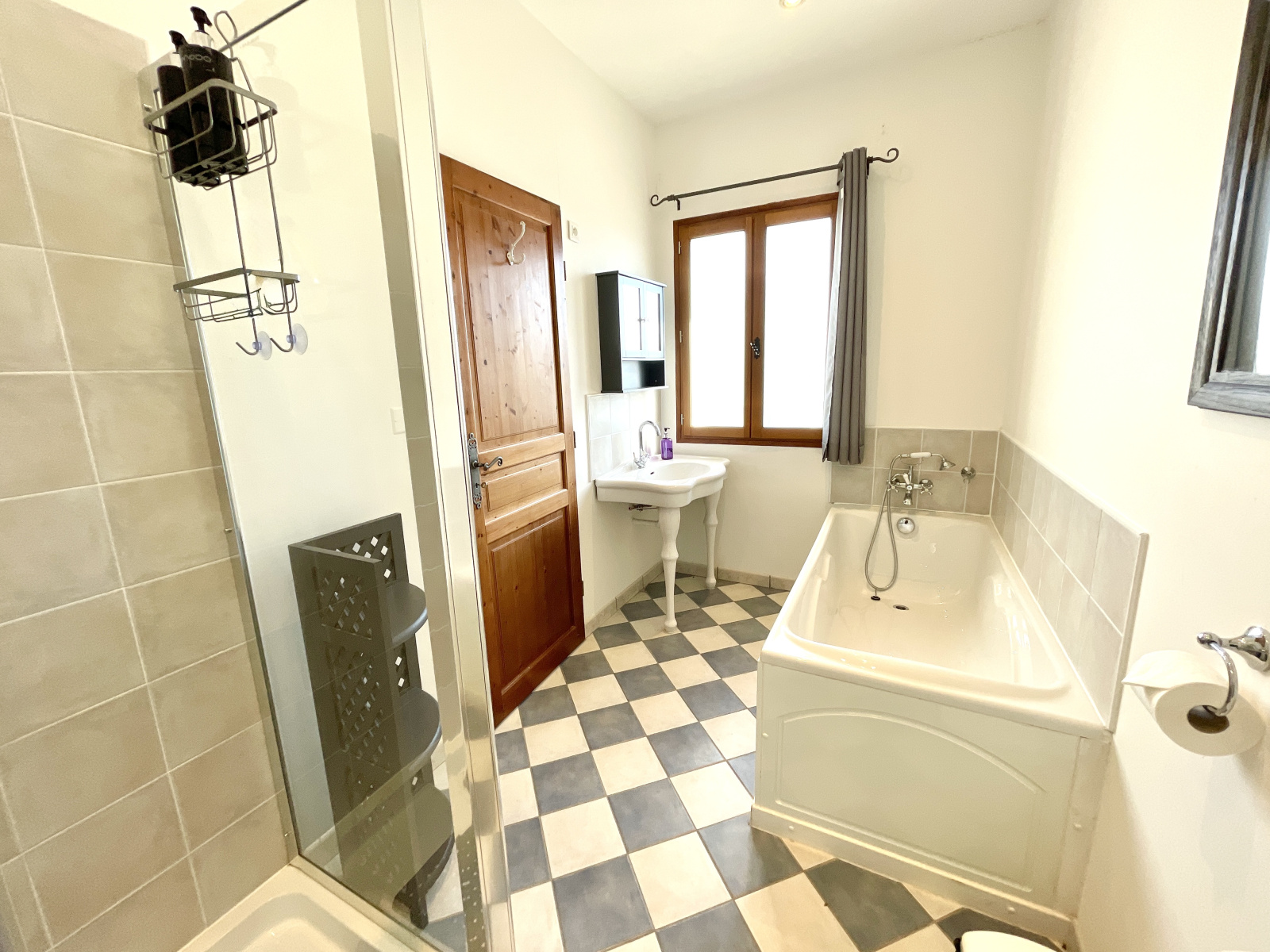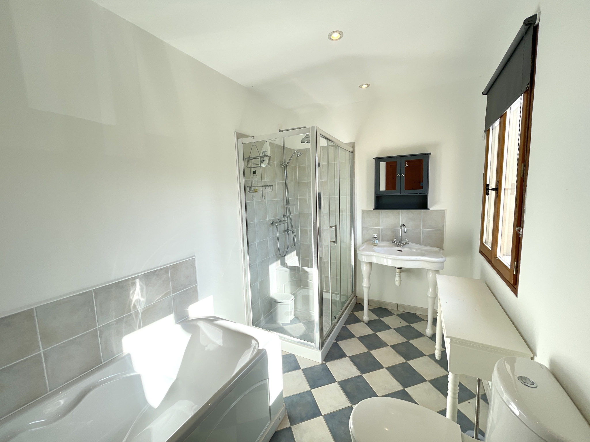 - 5 chambres en suite, chacune disposant de sa salle de bains privative avec lavabo, baignoire, douche et wc, offrant confort et intimité.