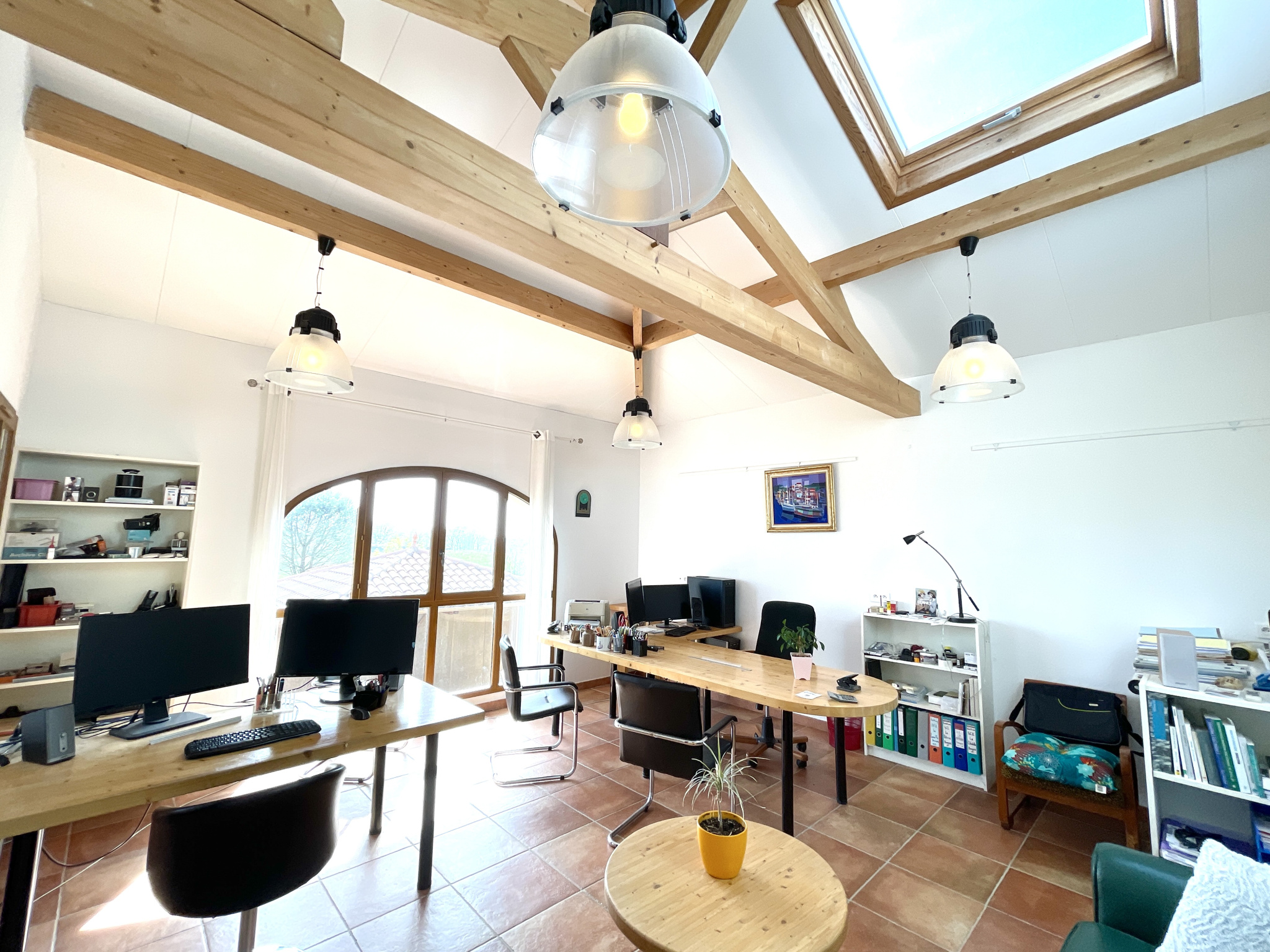 Un atelier d’artiste indépendant avec kitchenette et terrasse complète les espaces de vie et offre un fort potentiel d’usage (studio d’artiste, bureau, location).