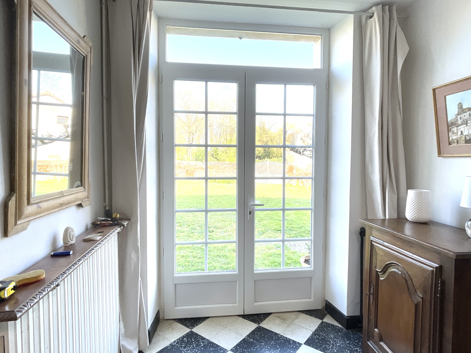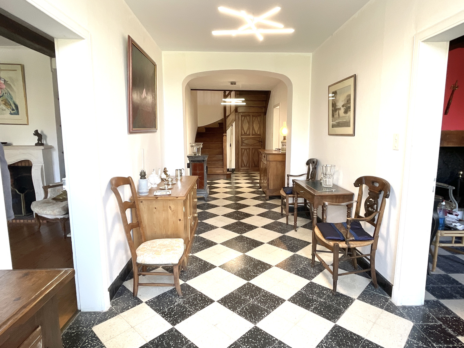 Dès l’entrée, un vaste hall central dessert deux belles pièces de réception :