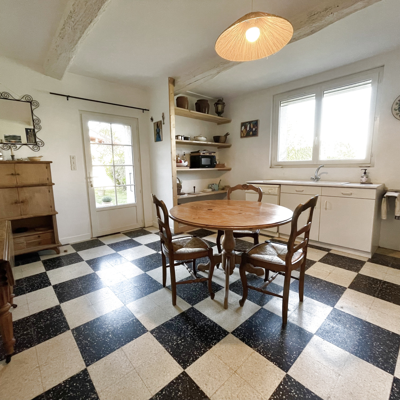 - Charme de l’ancien (poutres, cheminées, volumes)