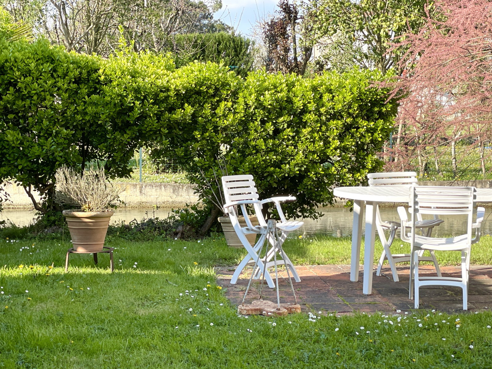 L’un de ses atouts les plus rares : un canal longeant le jardin, apportant une touche bucolique unique et un cadre de vie apaisant, propice à la détente.