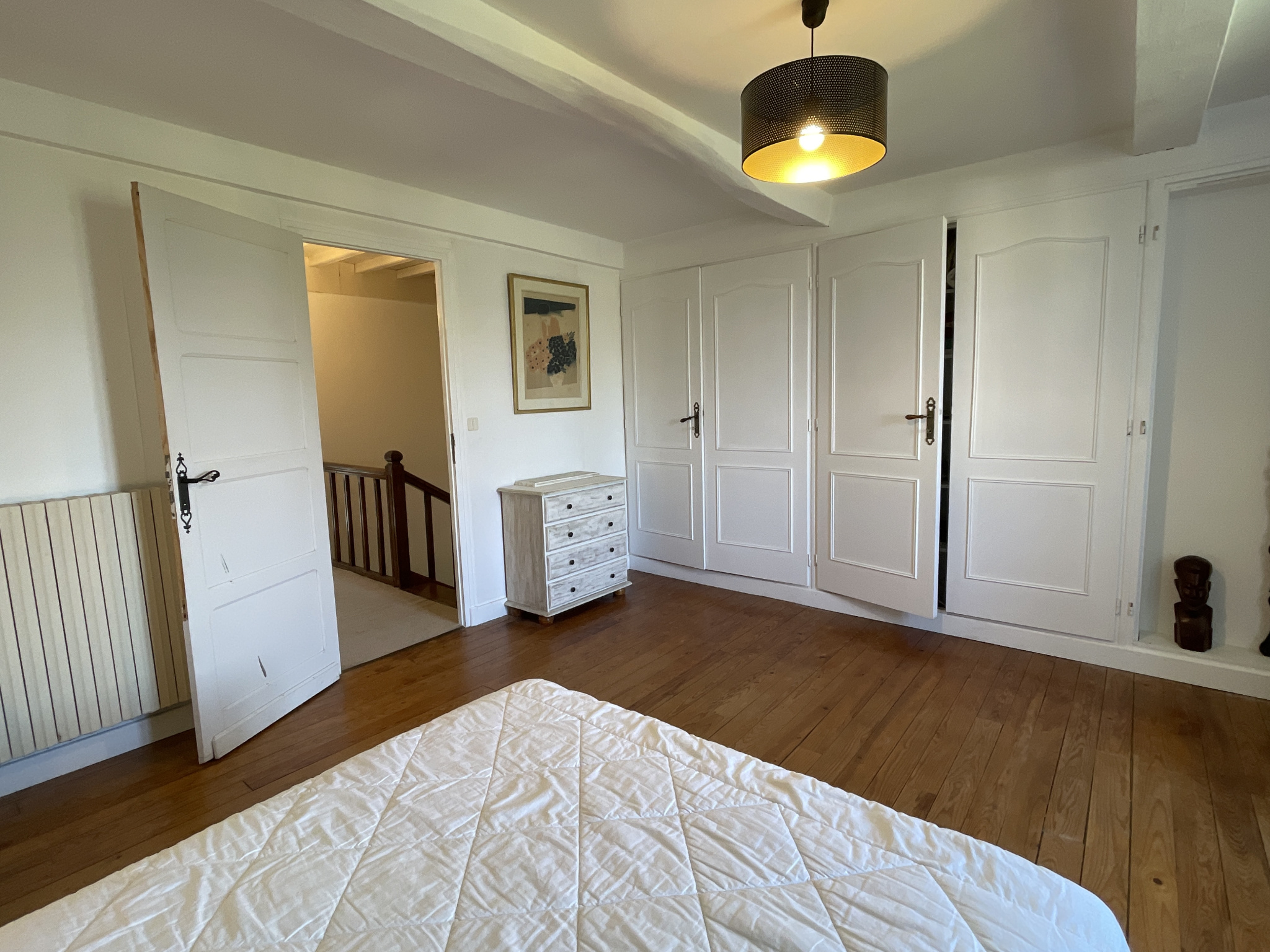 Un élégant escalier mène à l’étage, où un vaste palier distribue les espaces nuit.