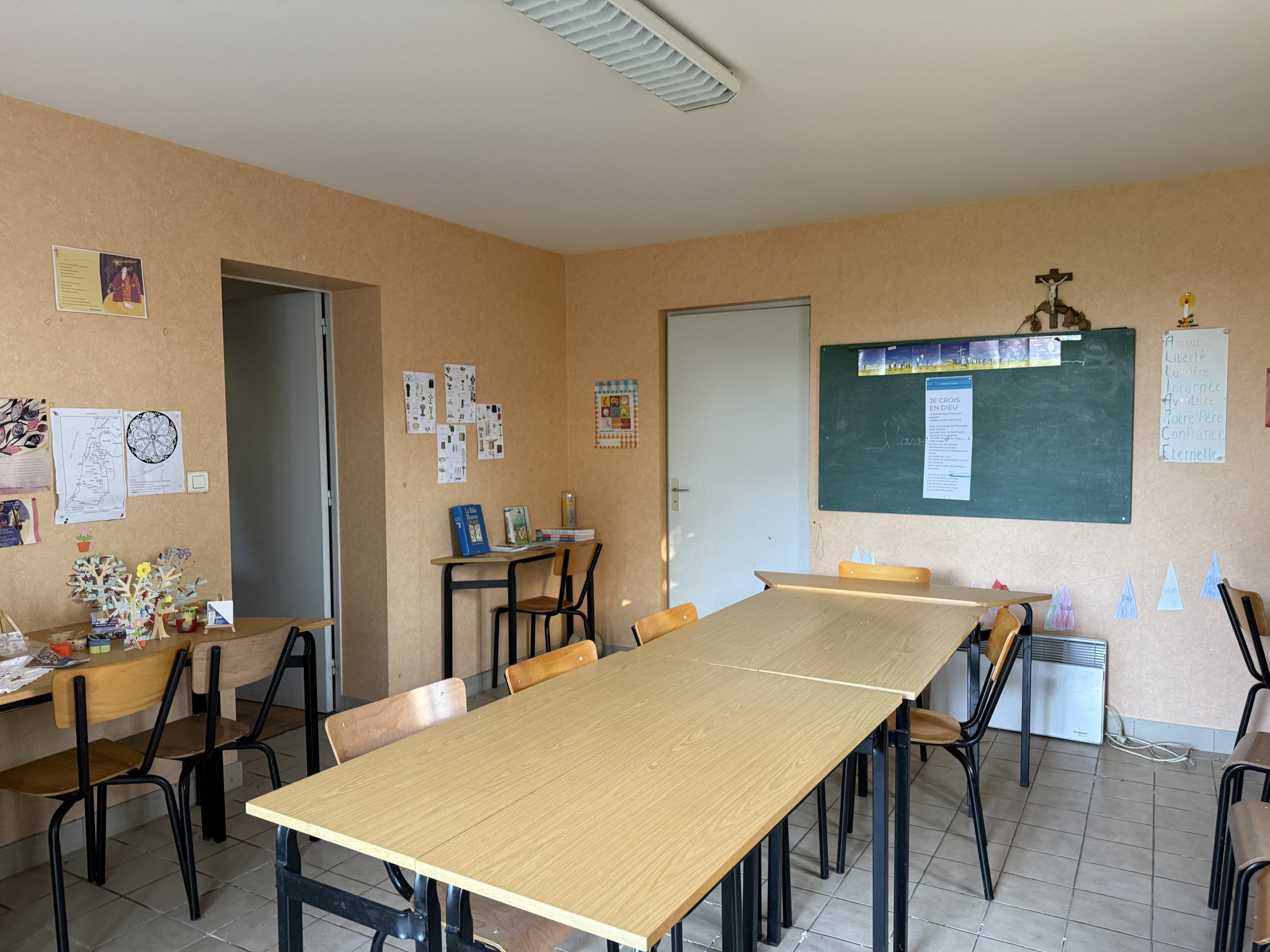 Travaux de rafraîchissement et installations à prévoir (cuisine, salle d’eau) en vue d’un usage d’habitation.