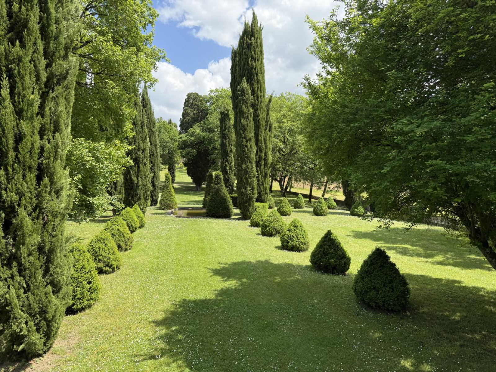 Le jardin, magnifiquement paysagé comprend un jardin à la française avec son bassin, des cyprès majestueux, un orme pluri centenaire, domine la campagne environnante et le lac. La piscine de 12,5x6m, située au cœur des arbres, offre également de superbes vues depuis sa plage. En empruntant les chemins dans le bois, on arrive à l'extrémité de la propriété, d'où l'on peut admirer un panorama exceptionnel sur les champs, le village et les couchers de soleil. Une propriété avec un cadre de vie rare et unique.