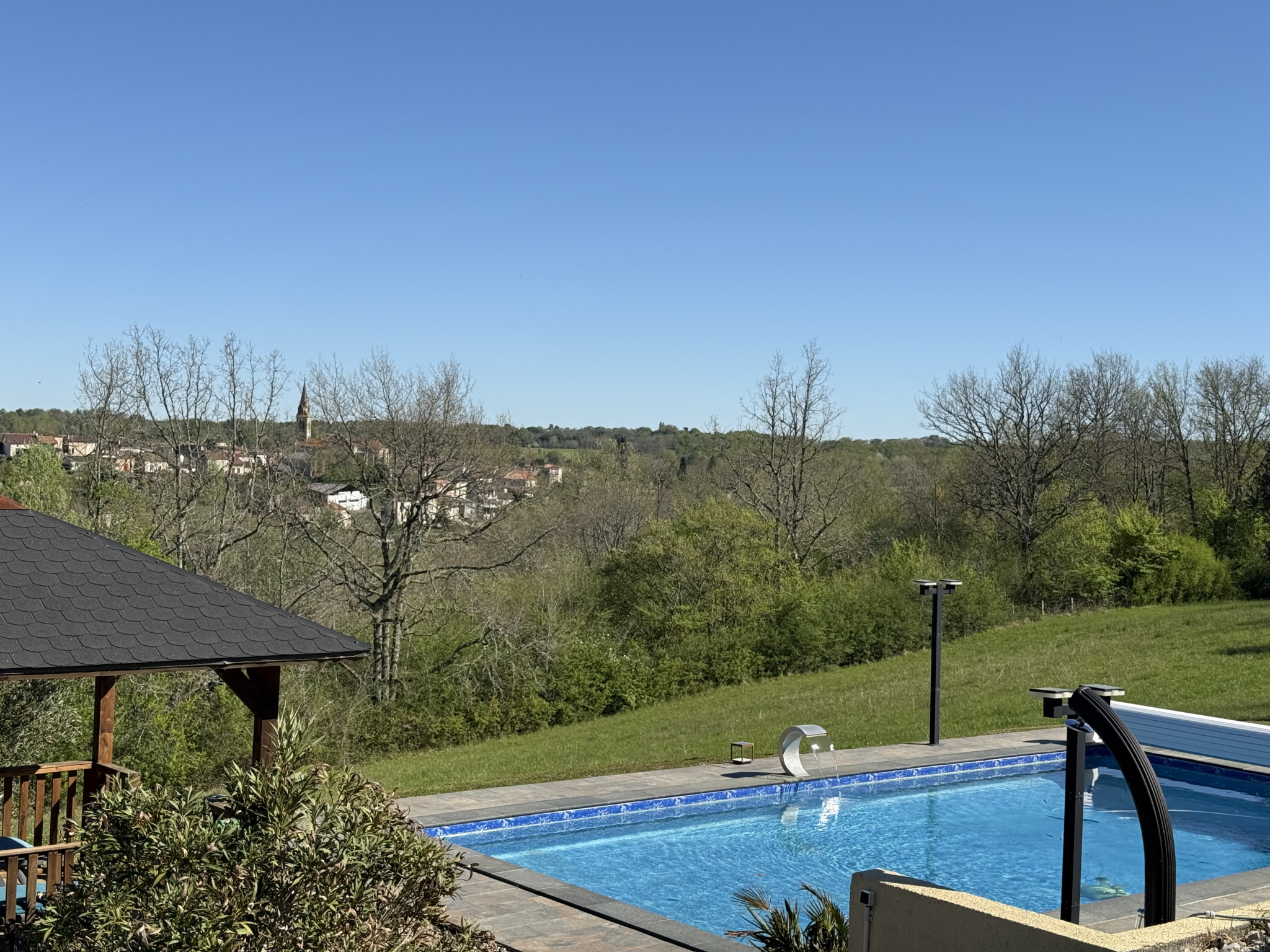 - un kiosque en bois pour profiter de l’ombre près de la piscine