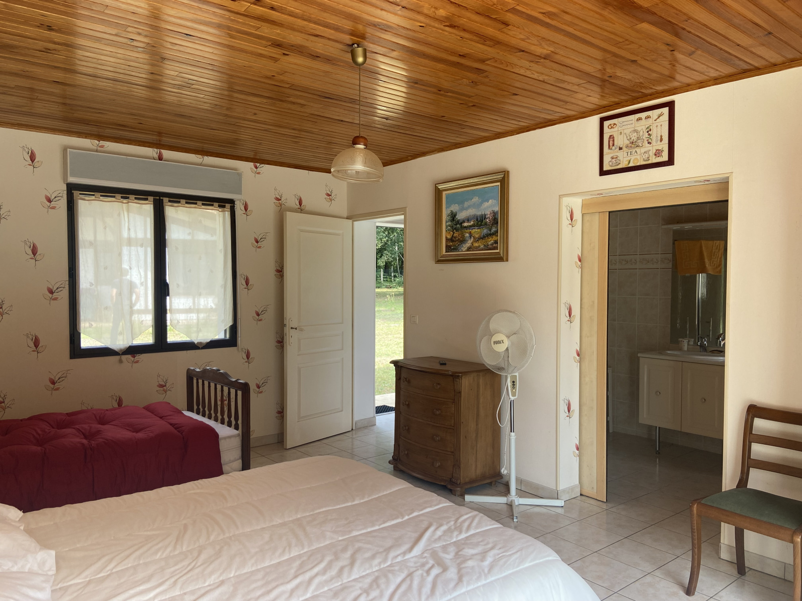 Réaup-Lisse (47170)Maison de campagne de187m² de surface habitable entièrement de plain-pied composée de la manière suivante une entrée, un salon avec une cheminée, une salle à manger ouvre sur une terrasse couverte, une cuisine, une chambre avec une salle de bain, une chambre avec une salle d’eau, un WC.